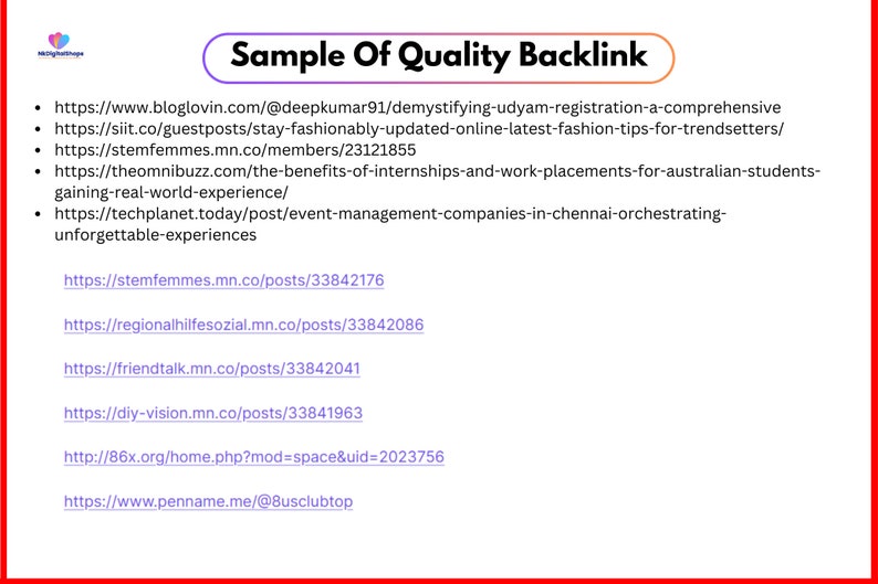 Because That Backlink May Not Have Been Working but the List of Backlinks That We Are Sharing, All Those Links Are Working and Trusted Websites. You Can Create Backlinks as Per Your Choice and You Can Also Earn by Providing Backlink Service. There Is No Strict.