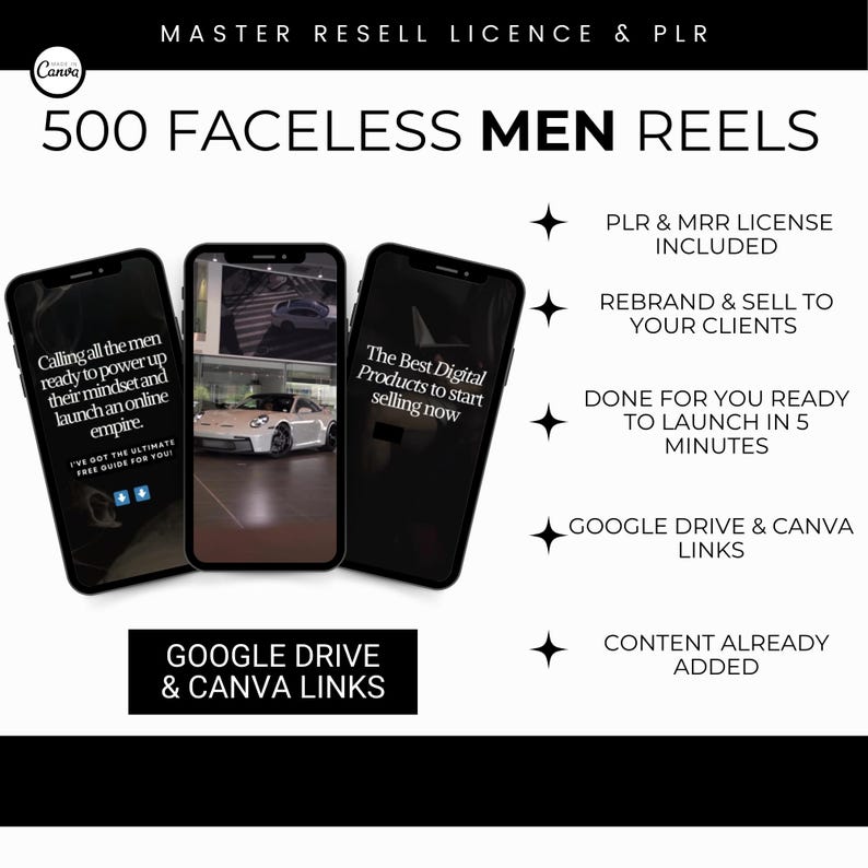 500 Faceless Men Digital Marketing Reels Bundle | MRR & PLR Included | Instant Download