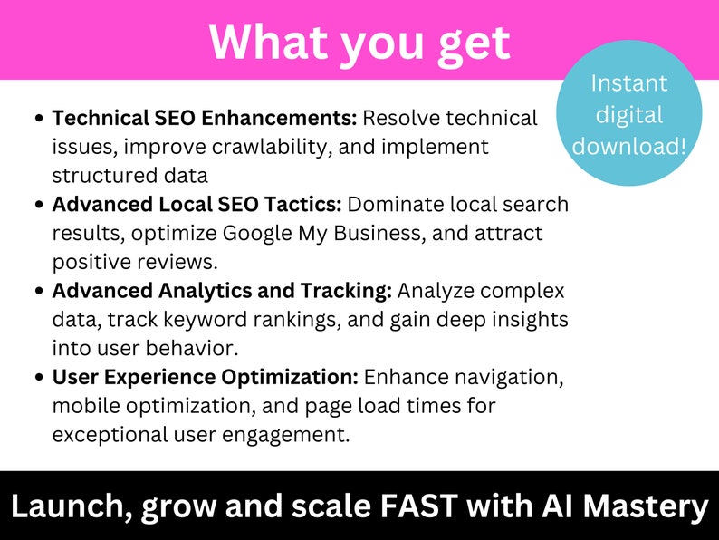 Cutting-edge techniques: Master advanced keyword research, content optimization, on-page and off-page strategies, technical SEO enhancements, local SEO tactics, and more.