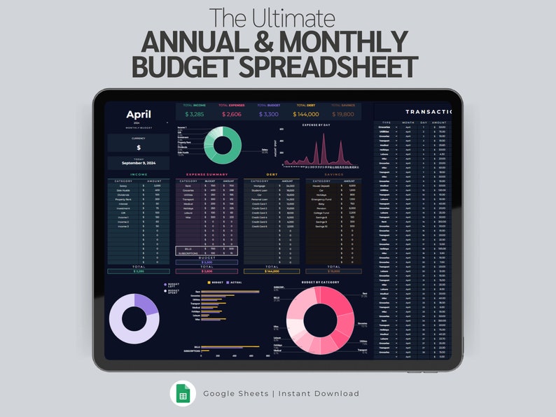 Purchase the Annual & Monthly Budget Spreadsheet and use as a tool to achieve financial freedom! You can easily track income, expenses, savings, and investments. It will offer insights into your spending patterns, facilitates goal setting, and promotes financial control.
