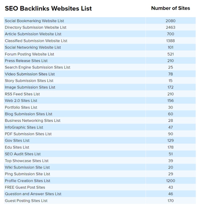NOTE: This is not a Backlink Service. We only provide websites data where you can create backlinks.