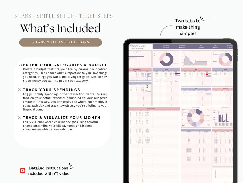 2Monthly Budget Tab: Manage and monitor your financial categories with an intuitive layout.