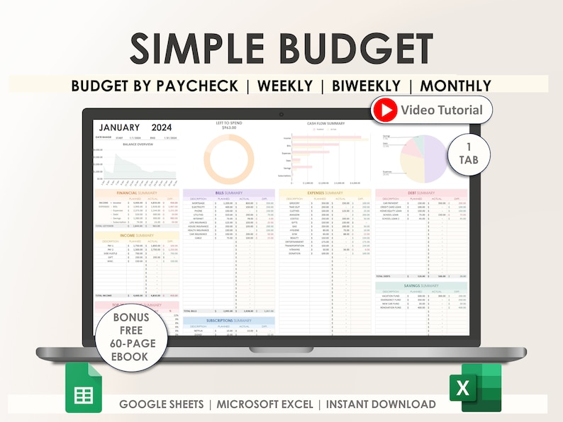 Includes a bonus free budgeting eBook and video tutorial.