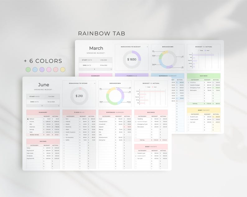 Expense Management: Keep your spending in check with our Fixed Bills & Expenses Tracker tables. Categorize expenses, track monthly expenses, and ensure you stay within your budget limits.
