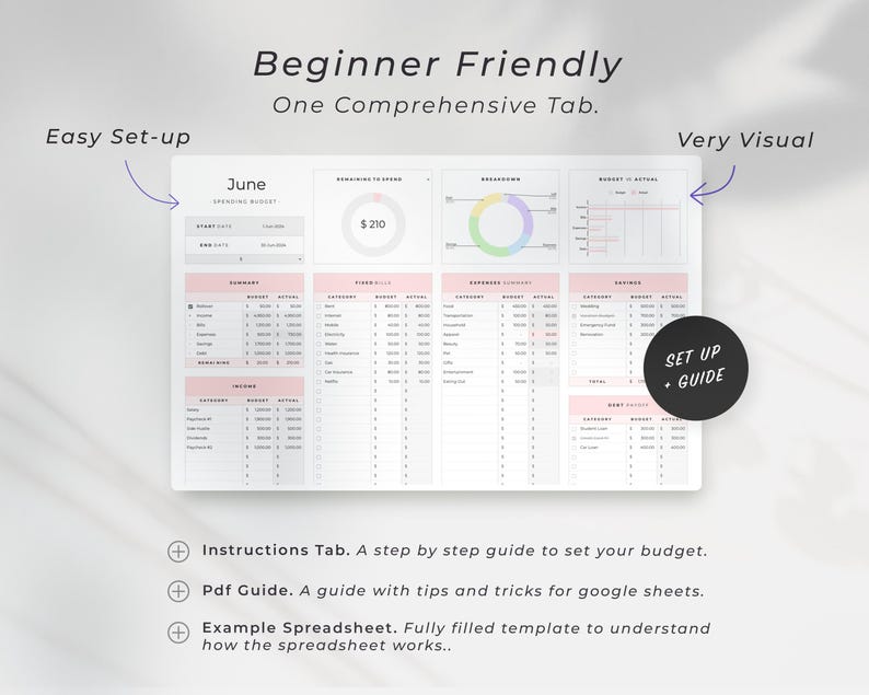 Easy Setup Guide: Get started quickly with our intuitive setup guide included right within the Budget Template. Say goodbye to confusion and hello to financial clarity.
