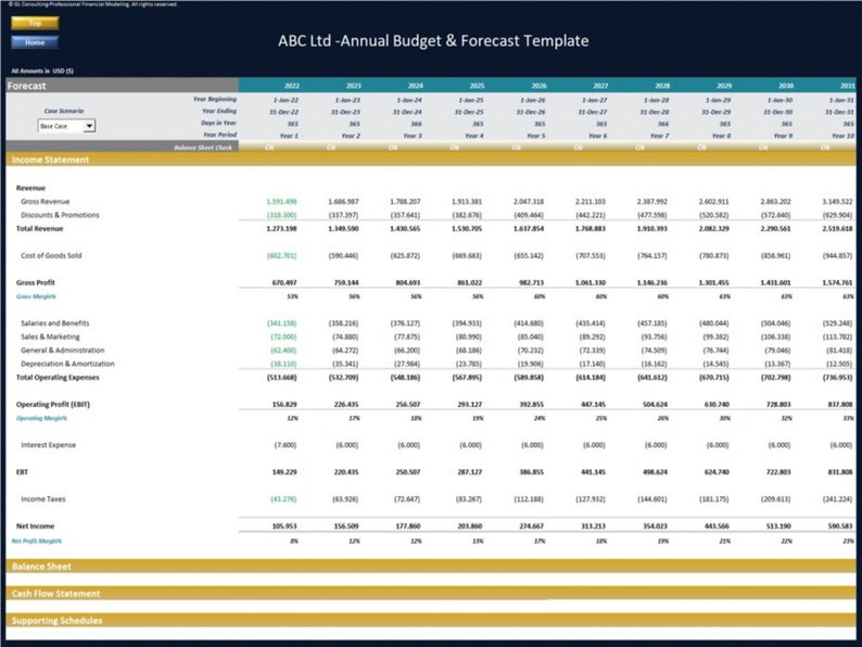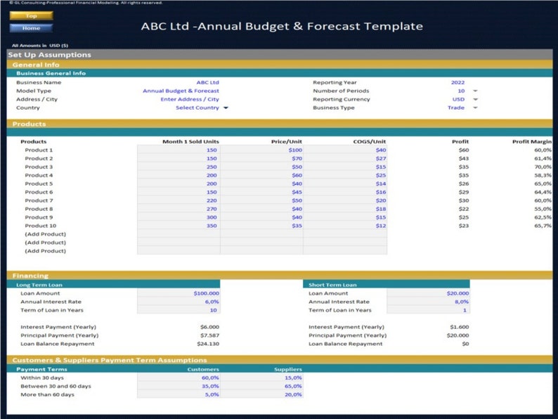 The template is built using Financial Modeling Best practices and is fully customizable.