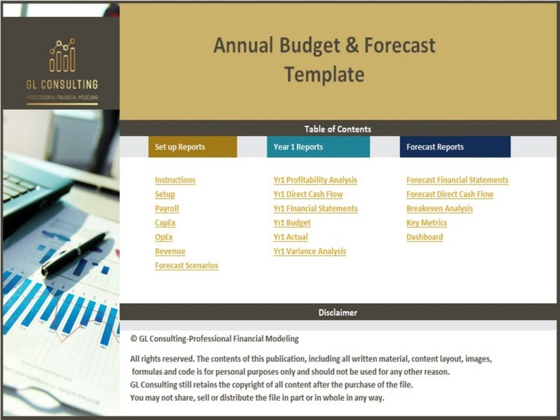 This model is a flexible tool assisting users in creating a budget from scratch and forecast the company’s results up to a 10-Year period.