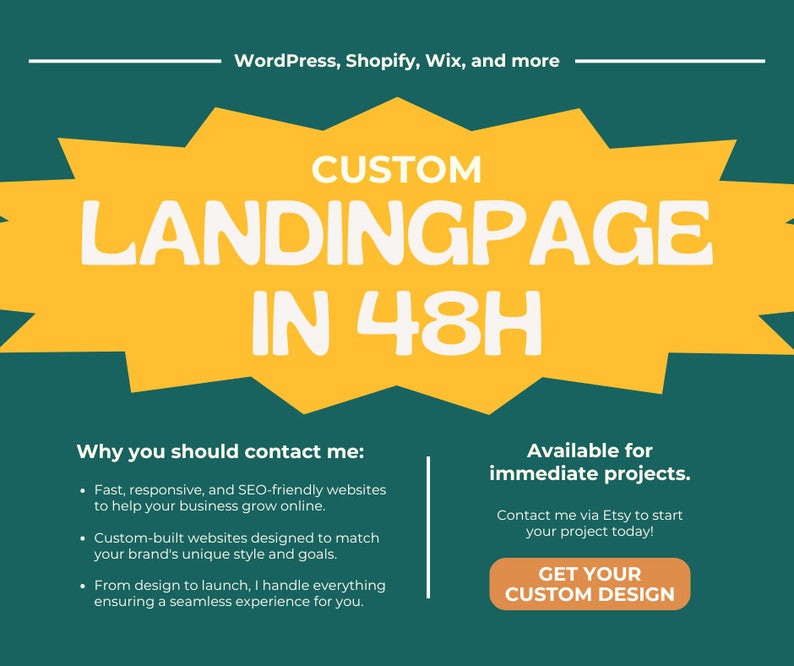 I will create a bespoke landing page for you in just 48 hours, exactly as you envision it. Whether you need it on Shopify, Wix or WordPress I will bring your vision to life and help you succeed online.