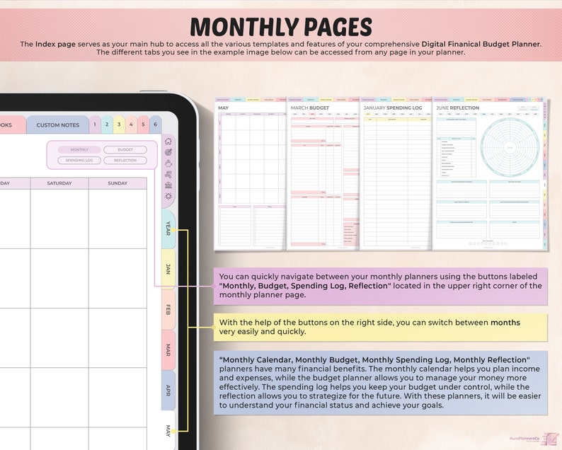 Monthly Planner / Monthly Budget / Monthly Spending Log / Monthly Reflection