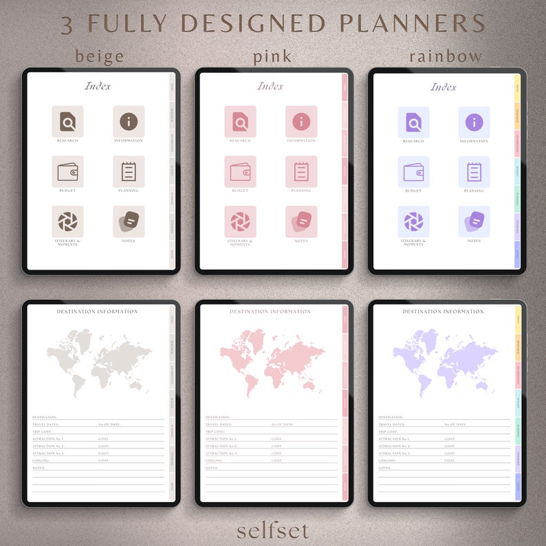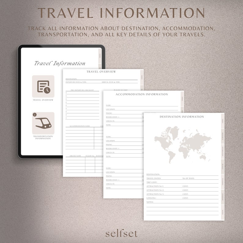 Tired of travel chaos? Meet your solution a digital planner featuring seven sections for Research, Travel Info, Planning, Budgeting, Itinerary, and Notes. Effortlessly organize every detail and enjoy a stress-free journey, focusing on the joy of travel. Elevate your adventures with this comprehensive digital travel companion.