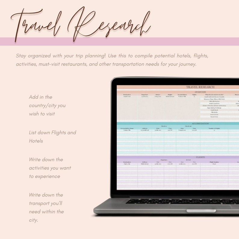 Ready to transform your travel planning experience? Say goodbye to stress and overwhelm with our customisable Digital Travel Planner, designed to streamline every aspect of your journey.