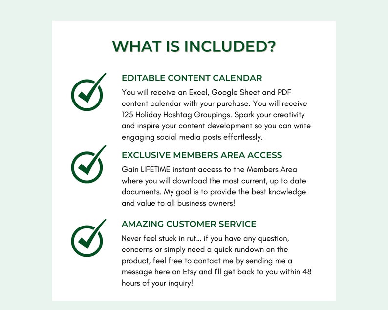 By design, the Content Calendar is user friendly and self-explanatory. Once youve confirmed your purchase you can rest assured that I, Kristin Dain, can be contacted by messaging me. Expect to receive a response from me within 24-72 hours. As always, I am here to make your life easier, not harder.