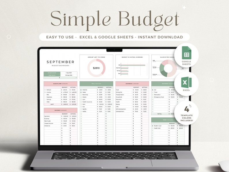 Start your budgeting journey with our budget planner for Excel and Google Sheets! Our budget tracker is simple and easy to set up and use through automatic calculations to monitor income, expenses, savings and debt. This one tab spreadsheet will help to budget weekly, budget biweekly, budget monthly, or budget by paycheck.