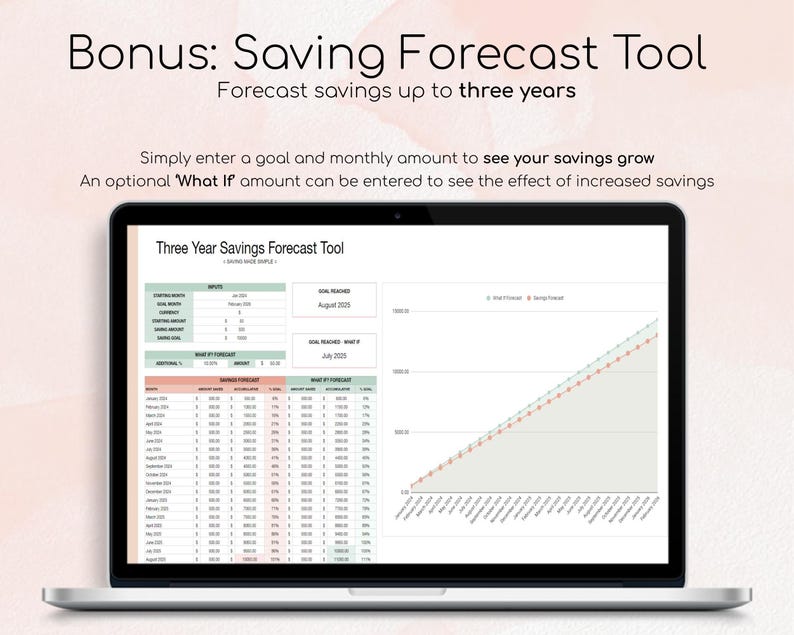 Bonus – Future Savings Tracker: Forecast your savings over three years.
