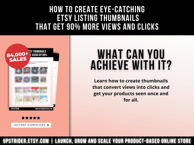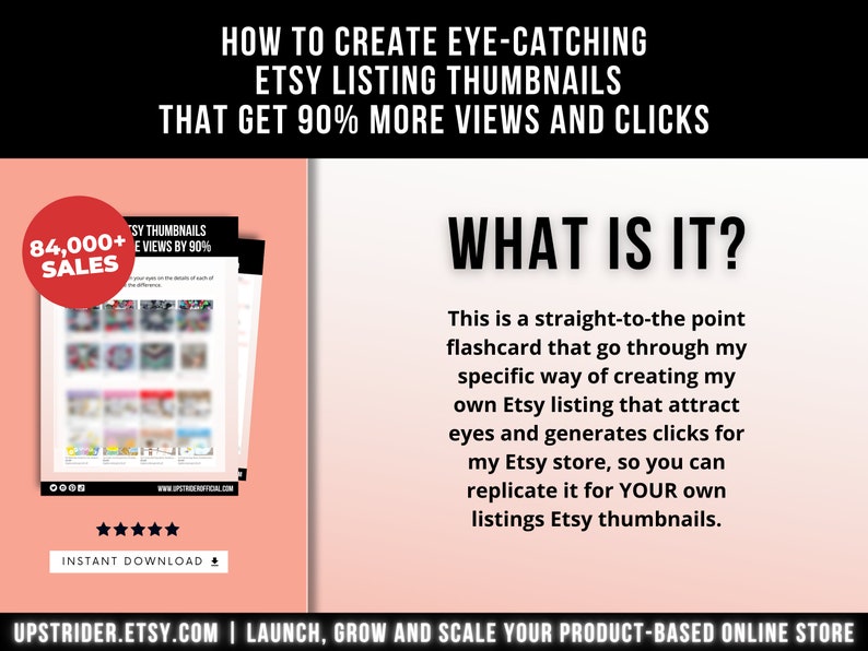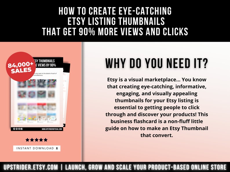 is a visual marketplace… You know that creating eye-catching, informative, engaging, and visually appealing thumbnails for your listing is essential to getting people to click through and discover your products! This business flashcard is a non-fluff little guide on how to make an Thumbnail that convert.