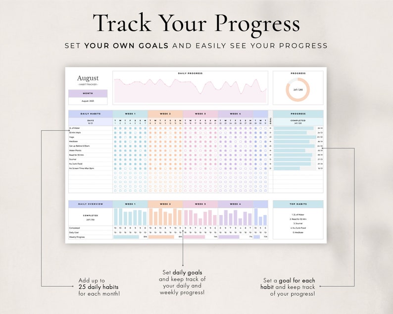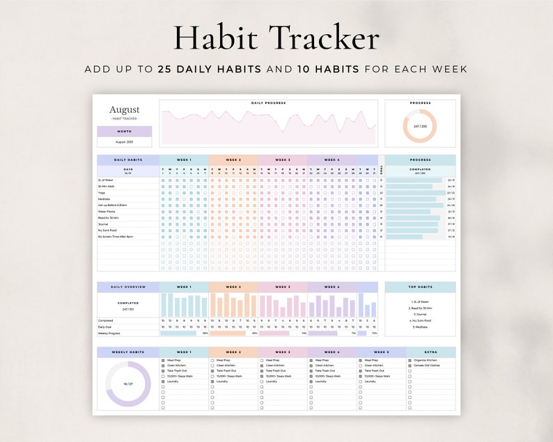 Habit Tracker Spreadsheet for Google Sheets, Daily Habit Planner, Weekly Habits, Goal Planner Dashboard, Digital Daily To Do List TemplateHabit Tracker Spreadsheet for Google Sheets, Daily Habit Planner, Weekly Habits, Goal Planner Dashboard, Digital Daily To Do List Template