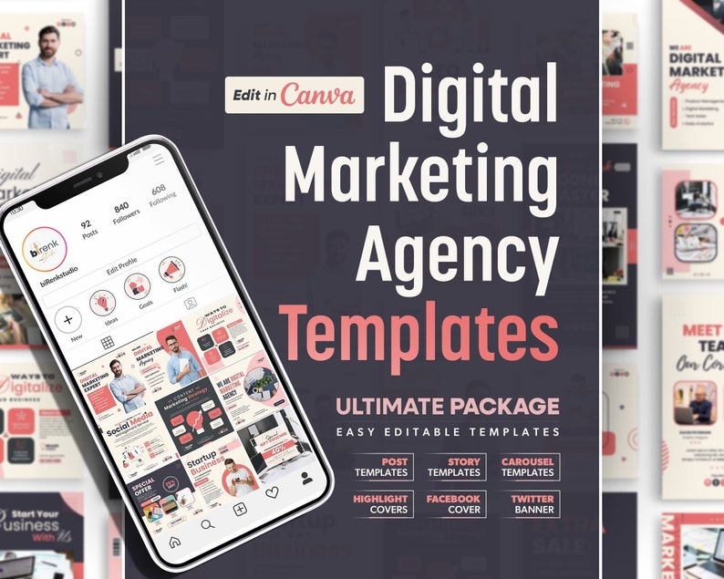 Instagram Templates for Digital Marketing Agencies, Digital Marketing Templates, Business Marketing Templates, Instagram, Ultimate Package,