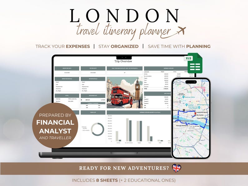 Heading to London and want to make the most of your trip? This planner is the perfect companion, ensuring you have an unforgettable experience. It offers a detailed 3-day itinerary to help you make the most of your time and visit all the must-see landmarks. With the handy expense tracker, you’ll easily keep your budget in check, allowing you to enjoy yourself without worry. With this planner, you’ll have everything under control and be perfectly prepared for every moment of your London adventure! And that’s not all!