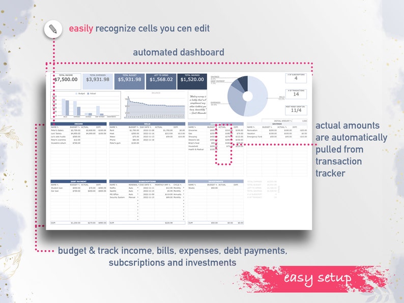 Monthly Budget Spreadsheet for Google Sheets | Income, Expense, Bills, Transaction, Savings, Debt Tracker, Personal Finance Digital TemplateMonthly Budget Spreadsheet for Google Sheets | Income, Expense, Bills, Transaction, Savings, Debt Tracker, Personal Finance Digital Template