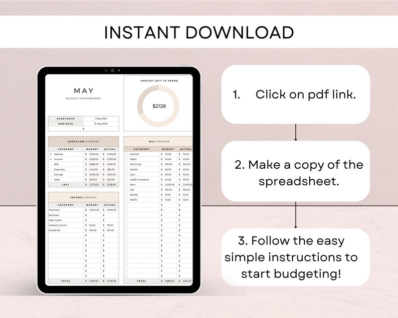After your payment has cleared you will be able to download your files instantly. Your purchase will contain a PDF file with the link to download the spreadsheet. Click Download Spreadsheet in the PDF to download the spreadsheet.