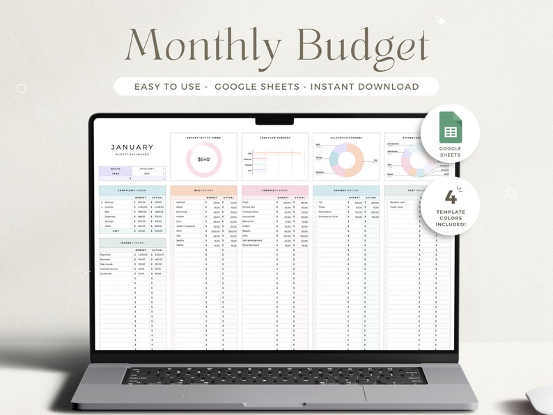 Start your budgeting journey with our monthly budget planner for Google Sheets! Our budget tracker is simple and easy to set up and use through automatic calculations to monitor income, expenses, savings and debt. This five tab spreadsheet will help to budget by month or paycheck and keep track of your bills and subscriptions.