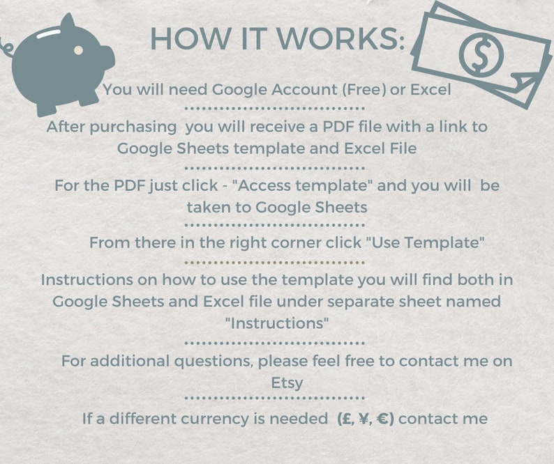 – Excel sheet with Monthly Expense template +instructions sheet and examples on how to use it,