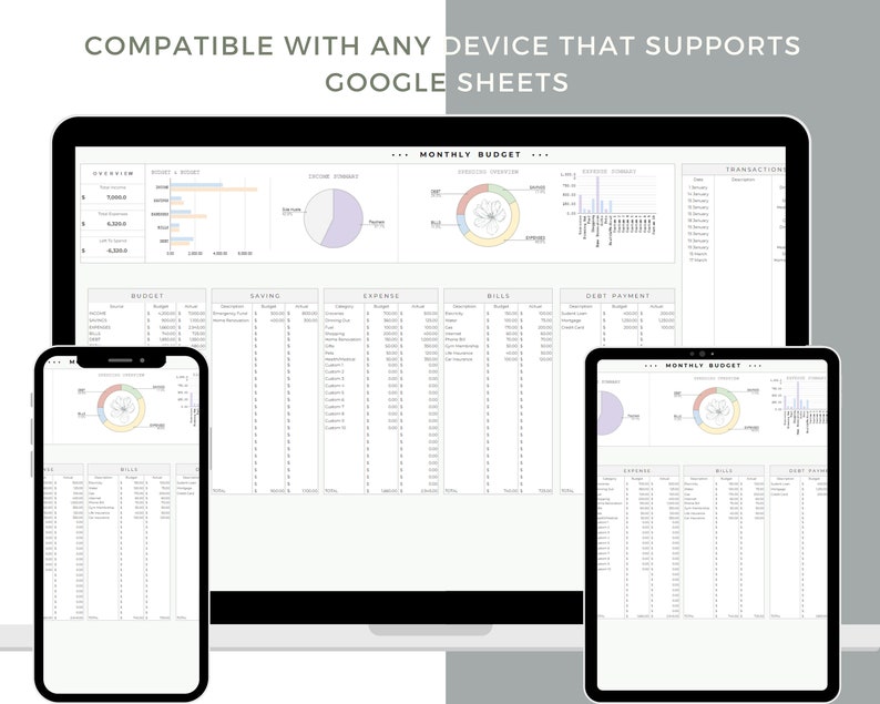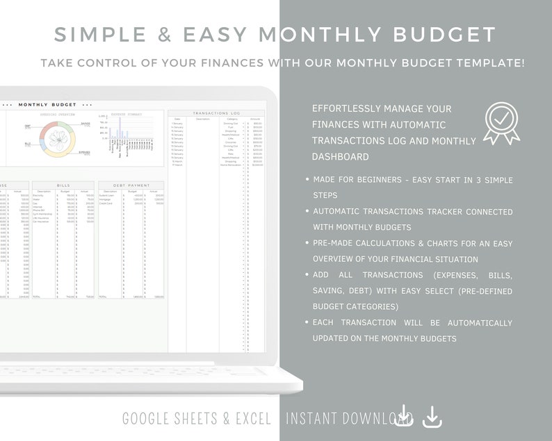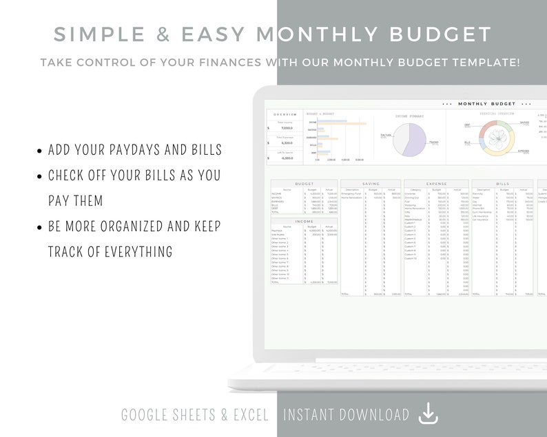 Monthly Budget Spreadsheet Template for Google Sheets or Excel, Budget Planner, Financial Planner, Budget Template, Expense Tracker, Savings budget dashboard, charts & graphs