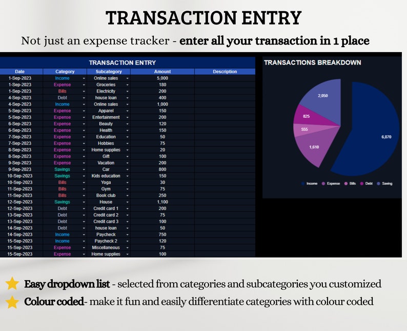 Kickstart your personal finance journey with our user-friendly Simple Budget spreadsheet. Designed for simplicity, clarity, and ease of use, it contains only the essentials you need. Just input your transactions, and watch as it automatically calculates everything for you!