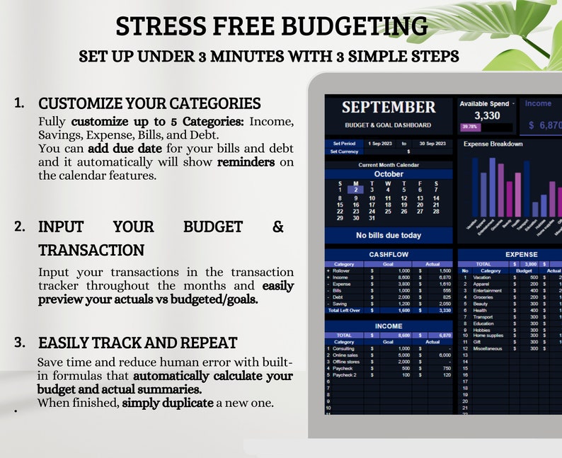 The Budget Dashboard: A comprehensive tab to oversee your finances. You will get this from the link in the PDF download.