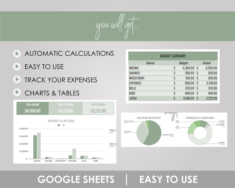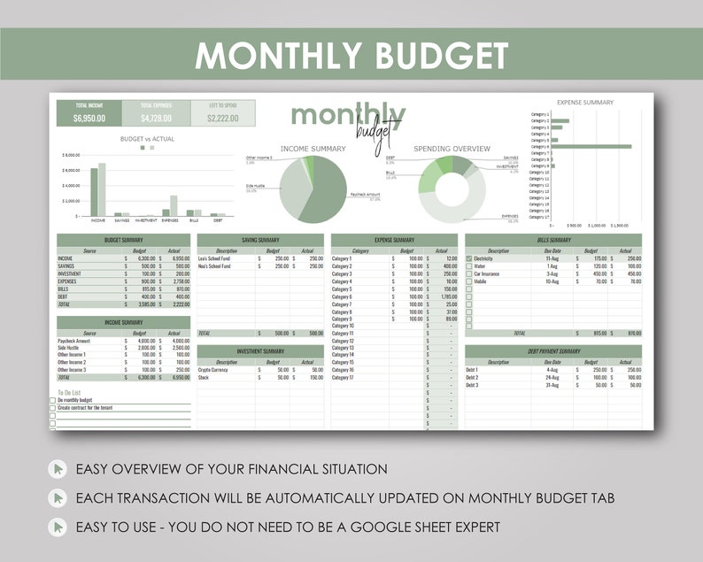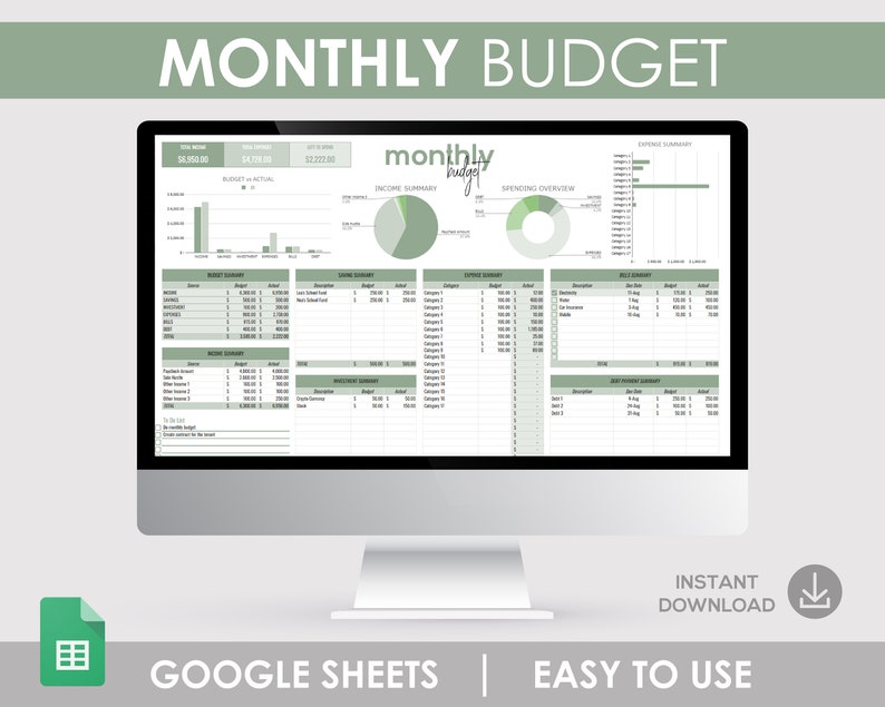 Master your finances effortlessly with our Google Sheet Budget Spreadsheet. Designed with precision and user-friendliness in mind, this comprehensive financial planner caters to both monthly and annual budgeting needs. Gain a holistic view of your income, expenses, savings, and even debt management all in one place. This tool is more than just a spreadsheet; it’s your roadmap to better financial health. Whether you’re a budgeting pro or just starting out, our digital planner simplifies the complex world of finances, allowing you to focus on achieving your financial goals. Experience budgeting redefined and take a confident step towards financial stability.