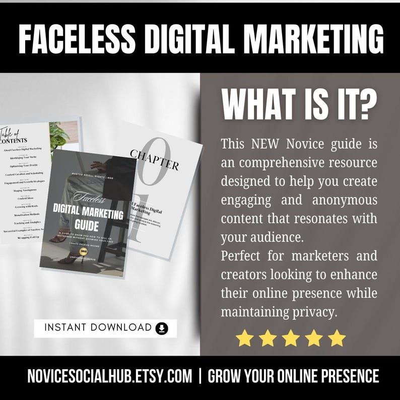 Whether you’re a seasoned marketer looking for fresh ideas or a small business owner aiming to boost your brand, the Faceless Digital Marketing Guide has you covered. Say goodbye to confusion and hello to success with this essential tool in your marketing arsenal.