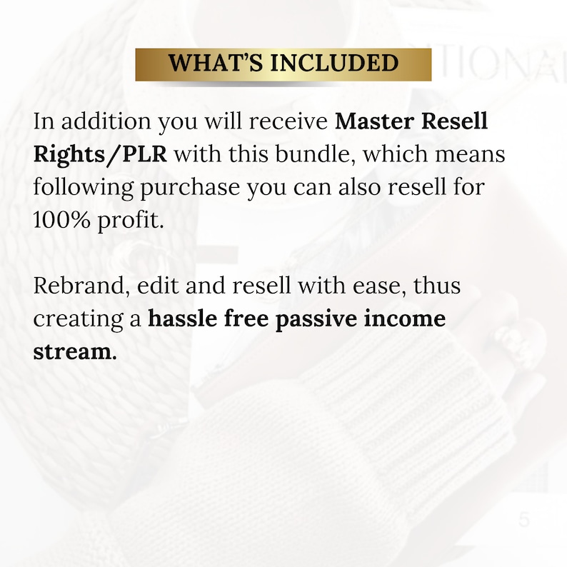 This bundle also comes with Master Resell Rights and Private Label rights, giving you an effortless hassle free new revenue stream. Don’t miss this opportunity to generate a passive income.