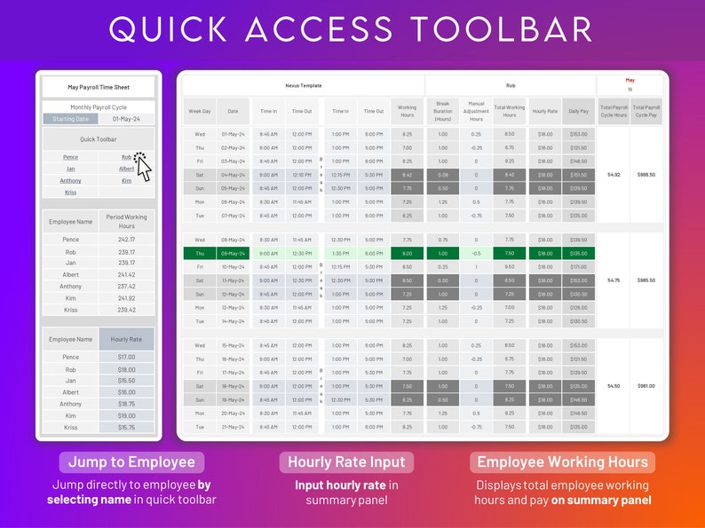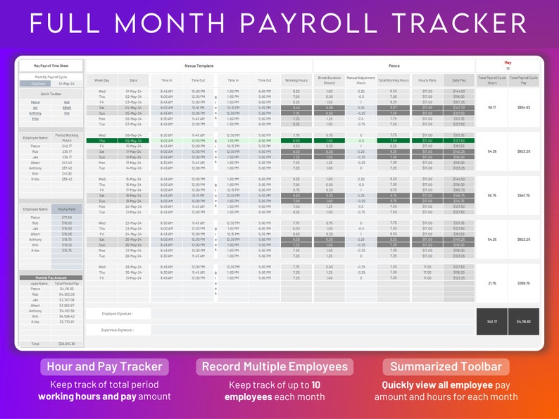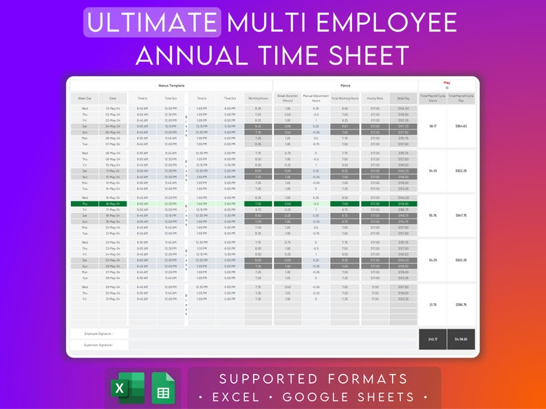Welcome to our Microsoft Excel & Google Sheets Ultimate Multi Employee Payroll Time Sheet, a powerful tool designed to simplify and streamline your employee hour and pay tracking process.