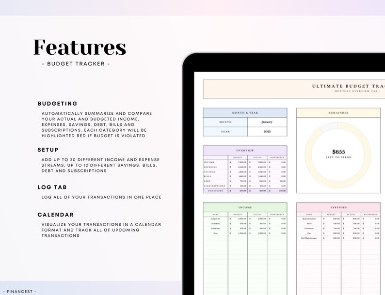 This budget spreadsheet will make your life a lot easier. It will help you budget and track where your money comes and go. This spreadsheet also allows you to track your savings, bills, debts, subscriptions and net worth!