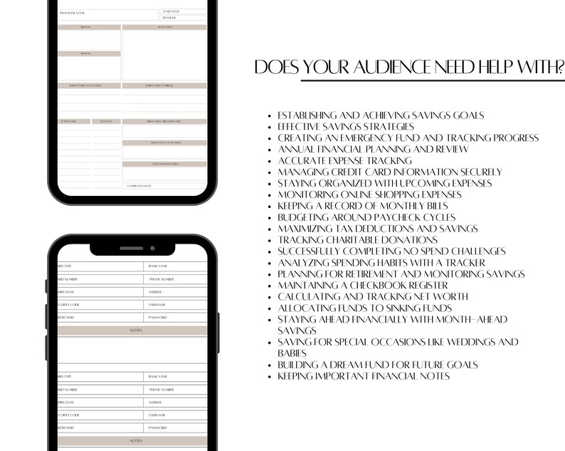 This comprehensive planner not only empowers you to manage your money, set financial goals, and achieve financial freedom but also provides you with the opportunity to resell it for profit. With its fully customizable elements, from colors and fonts to images, this planner can be tailored to your unique style, making it a powerful and personalized tool for your financial journey and resale.