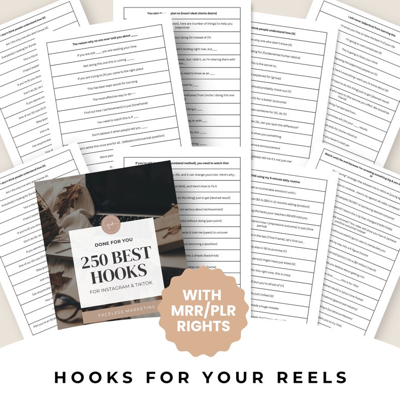 PLR E book PLR Digital Product Grasp Resell Rights E book Digital Advertising and marketing MRR Template Instagram Hooks Faceless Advertising and marketing Resell rights