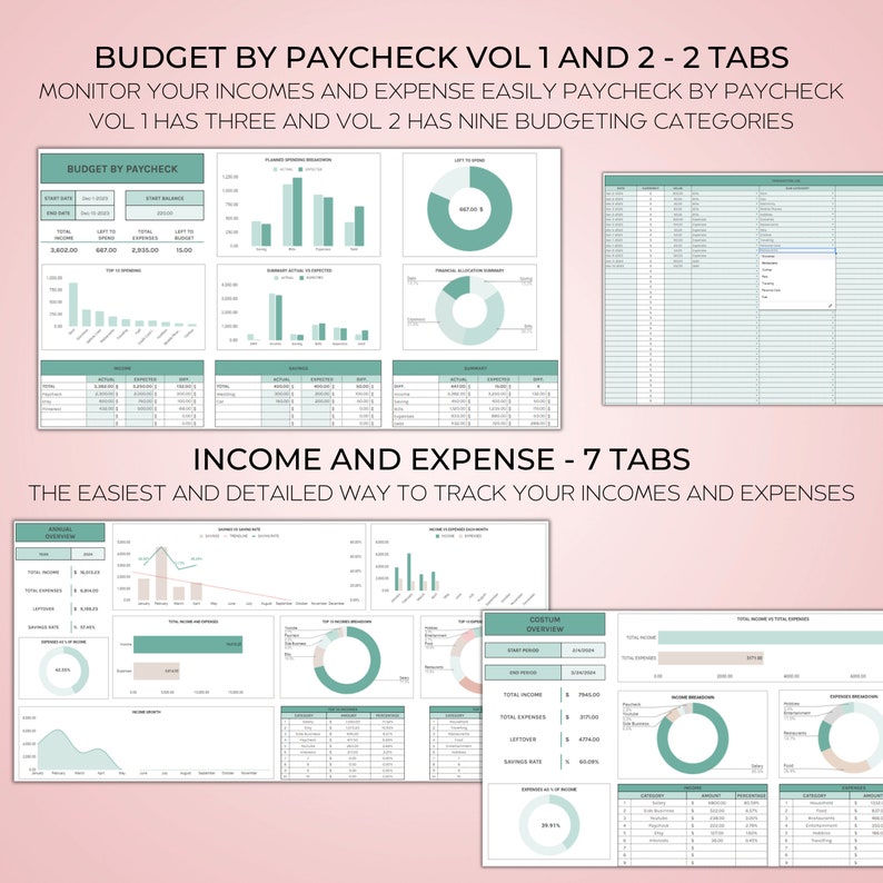 Income and Expense Tracker Template – 7 tabs