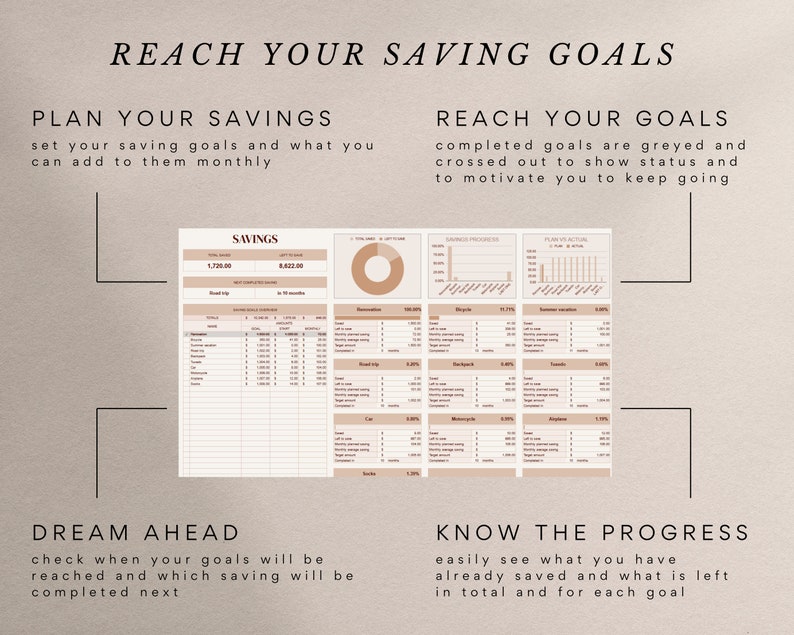 Our planner is all about simplicity and effectiveness, giving you a complete view of your savings so you can easily plan and track your progress. It’s designed to help you stay organized and motivated, making it easy to manage all your savings and keep tabs on their status. All you need to do is to set up your saving goals, and capture your contributions – everything else is taken care of for you.