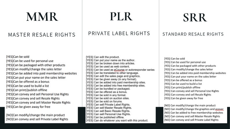 Legally labelled and fully licensed MRR, SRR & PLR for peace of mind!!!