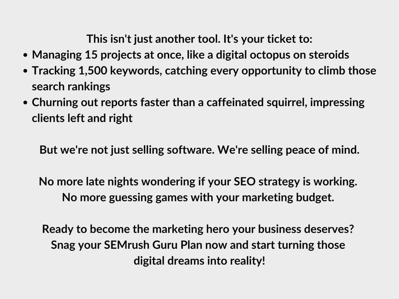 SEO SEMRUSH Guru Private Account, Keyword Analytics Website Tool, Ranking Traffic Competitor Suite, Digital Marketing Professional Plan, 14 Days