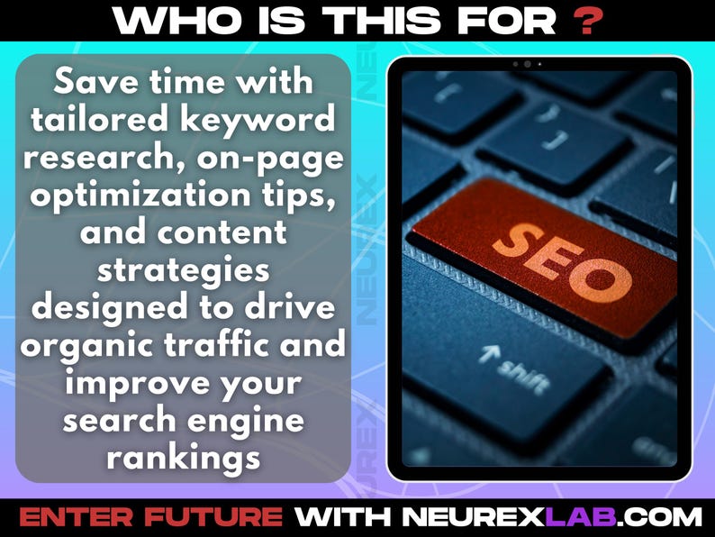 Our SEO Strategy Generator is designed to help you improve your search engine rankings. By analyzing your website and industry, it creates a customized SEO plan that addresses your specific needs and goals. From keyword research to on-page optimization, this tool provides actionable insights to enhance your online visibility.