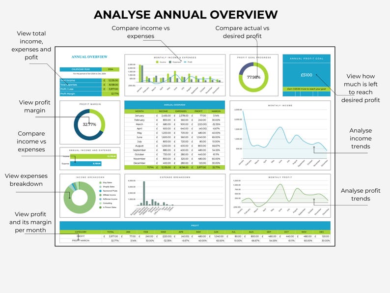 Small Business Bundle show financial data on a monthly, quarterly, and annual basis. Having all your bills organized and tracked will give you peace of mind. Youll have a clear overview of your financial status and be better prepared for any unexpected expenses that may arise. With our template, you’ll gain knowledge in no time!