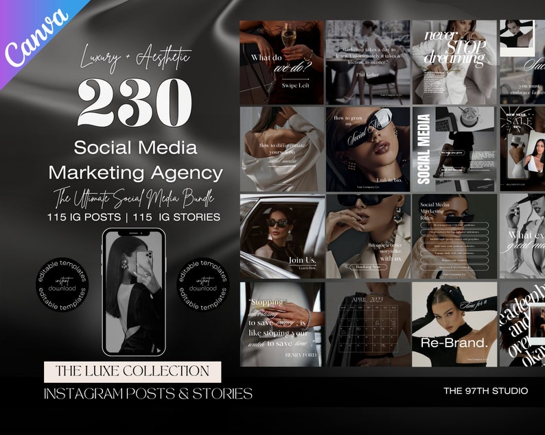 Ready to book more clients, and take your agency to the next level? Get ready! This is The Ultimate Bundle for your social media marketing agency. With over 230+ templates, these templates are specifically created for busy entrepreneurs looking to elevate their business in profits and social media influence!