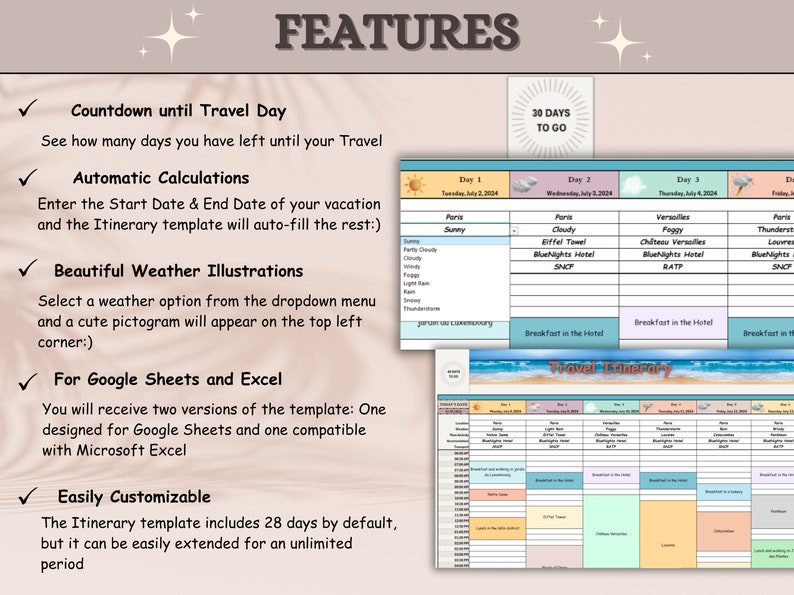 Plan your dream vacation with our Travel Itinerary template made for Google Sheets and Excel users:)