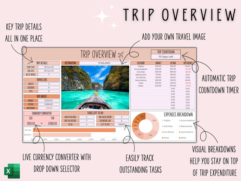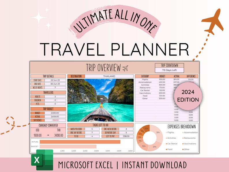 This is a fantastic travel itinerary planner, easy to follow instructions and the availability to customise my sheets are fantastic. Visually appealing layout.