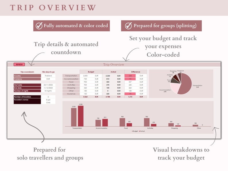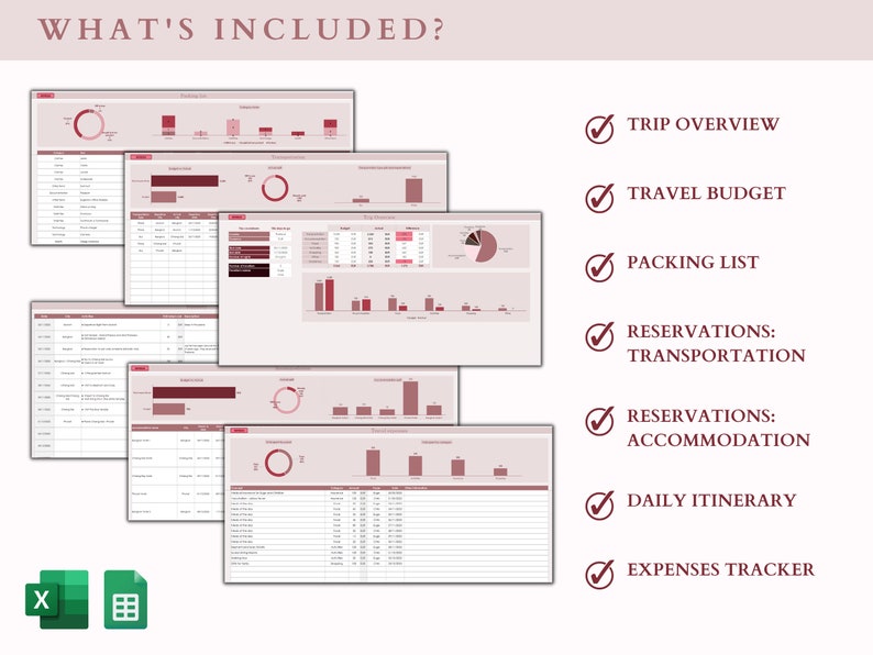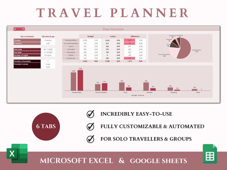 [Travel planner digital travel planner googlesheets travel planner excel spreadsheet travel organizer holiday planner travel budget tracker]