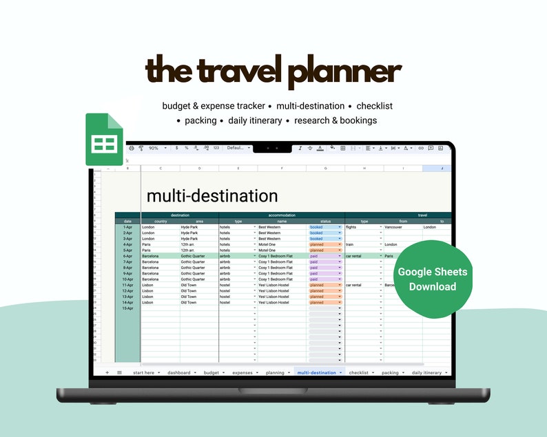 This template is designed for Google Sheets only. To use the travel spreadsheet, you must have a FREE Google account.