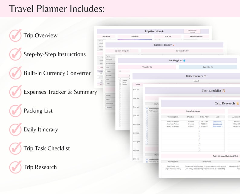Overall, our Digital Travel Planner is a comprehensive spreadsheet that streamlines the vacation planning process, ensuring you can relax and enjoy your trip!