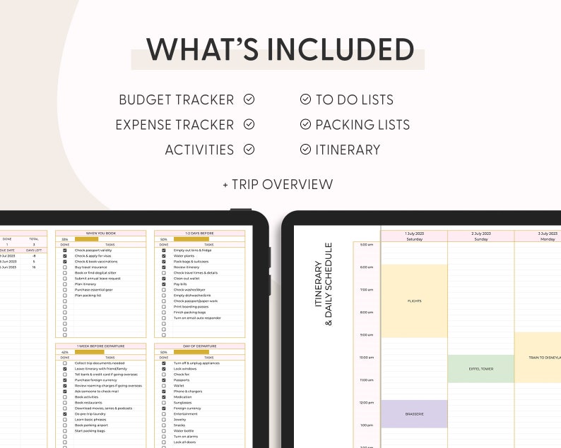 Travel Planner Google Sheets Excel Template Holiday Organizer Travel Budget Spreadsheet Travel Itinerary Vacation Plan Family Packing List.