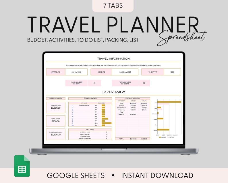 This 7-in-One Travel Planner Spreadsheet includes: